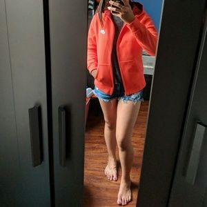 Brand new with tags. Soft and cozy Nike hoodie. Nice bright red orange color. Tag says for boys but I feel like it's unisex. Hood is lined with a burgundy color shown in pics. (Last pic is the size large in boys)