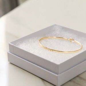 🌟Fearless🌟 Mantra Bracelet in gold. Beautiful sparkle and shine, the perfect everyday jewelry. Elegant and simple, wear alone or layered. Handpicked by me in Manhattan, designer quality high end piece, 925 sterling silver. Wear this bracelet as a reminder to fear less & live more🦄