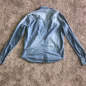 American Eagle Distressed medium wash Denim Button Down Shirt size small