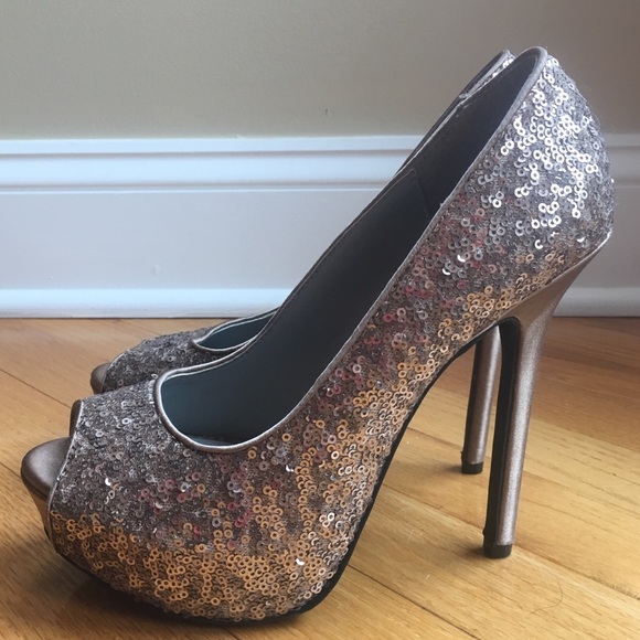 Worn once for maybe 3 hours tops at my wedding. Excellent condition. Champagne color. 5 inch heel.
