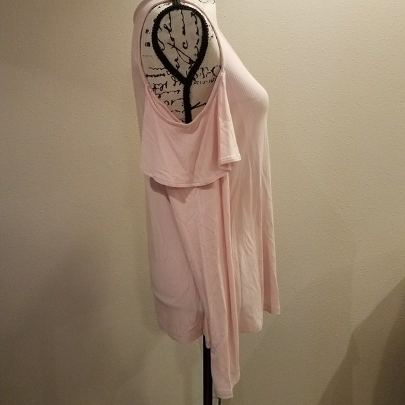 Light pink, cold shoulder with ruffle detail at shoulder, very soft material