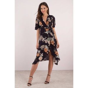 Fall in love with our Spring Fling Floral Wrap Dress. Featuring floral print and wrap detail on a midi dress. Pair with wedges. As seen on Tobi. By Honey Punch. Original manufacturer tag attached.