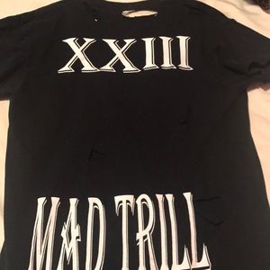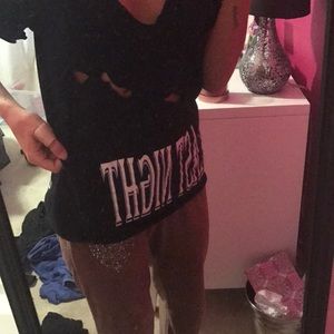 Super cool shirt that i cut and destroyed ! There is no size tag on it but it is Size L since I love oversized shirts! Looks so cute with a Bralette or bandeau underneath :)