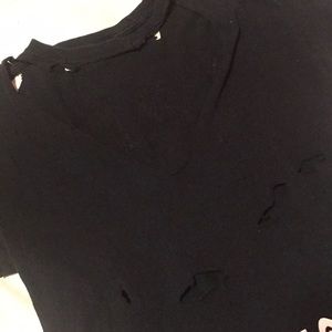 Black Vintage Cut and Distressed Oversized Tee