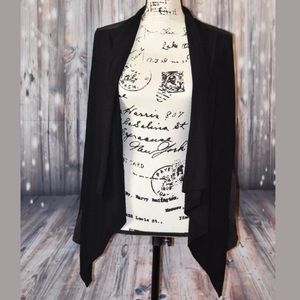Francesca’s black open front mixed media cardigan