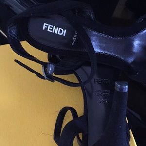 NWT, Fendi High Heels - A nice a pair of Neiman Marcus bought strapped, velvet, leather and clear ornament decal(see last pic, a small imperfection on the left shoe) shoes. Made in Italy of fine quality, in size 8.5; Heels are about 3.5”- 4.0”. These are adorable and would add to the splendor of a variety of events!