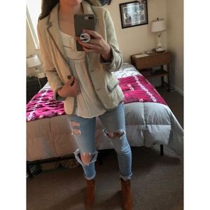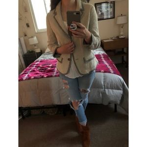 LOFT Soft Grey Pinstripe Blazer with Orange Piping