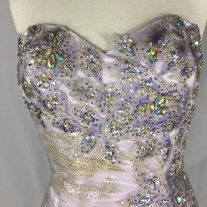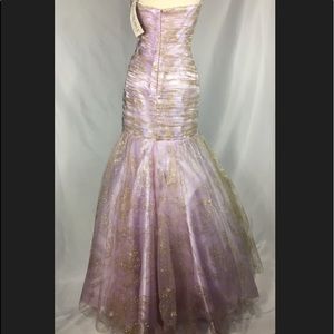 💜 So elegant light lilac and gold strapless sweetheart neck gown size 8