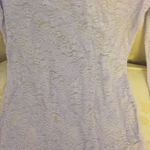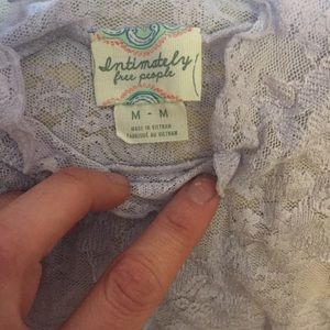 Lavender Free People Lace Long Sleeve Blouse. Pictures do not do this justice. The collar is a little high and it is see through so you can wear a sexy bra or a tank top under. Does not have tags but has never been worn. I give gift with purchase whenever a customer spends $20+ on products. Also have it in white under a different listing. The white listing has better pictures if you need more just go under that listing to look at the different angles.
