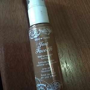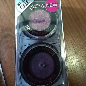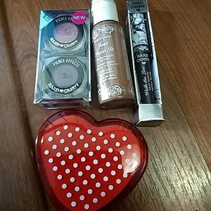 This is a really cute makeup bundle of 3. There is a fierce effects hard candy and lost and found eyeshadow. It comes with two eyes Shadow. And there is a just face it featherweight Formula One Step foundation. The color is called Deep. Followed by Walk the Line liquid eyeliner in sugar plum. Last is an added bonus of an adorable heart-shaped mirror.