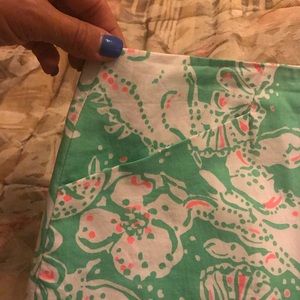 Adorable lilly Pulitzer skirt with pockets. I am 5’1” amd the skirt falls about an 1-1 1/2” above my knee. Light weight material with lace accent around the bottom.