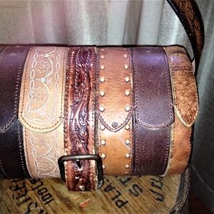 Rodarte leather belts cylinder bag, bag from old belts. No bag is identical. This bag is brand new with tags and come with original marketing papers from Barney New York. Made in 2011 this bag is soooo soooo cool. It can be worn many different ways. I love the look best across the back in a cross body look. Very unique bag. Leather throughout. Made and released in 2011. Thanks for stopping by. Please ask questions.