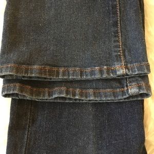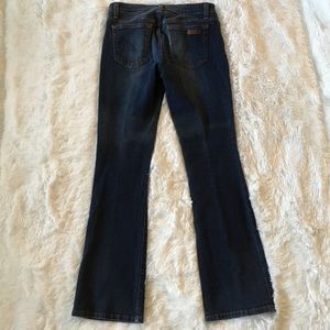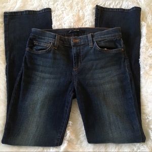 Petite boot cut Joe’s Jeans in their Rosie style. These are flattering and very stretchy jeans. Waist: 15”. Rise: 9”. Ankle opening: 8”. Inseam: 30”.