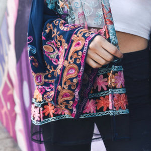 Features: Armholes & Bell Sleeves, Gorgeous Embroidery Detail in Floral and Paisley Print, Lightweight & Sheer. 100% Viscose.