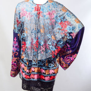 Embroidered Floral Paisley Mesh Kimono