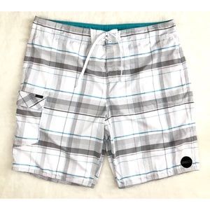 O'NEILL White Blue Gray Plaid Lined Board Shorts