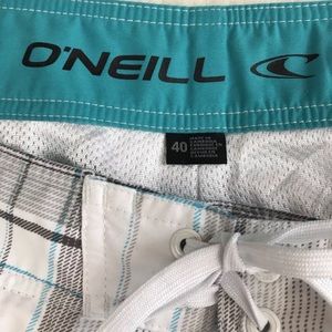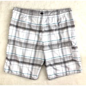 Mens O'NEILL White Blue Gray Plaid Lined Board Shorts Surf Swim Trunks Sz 40