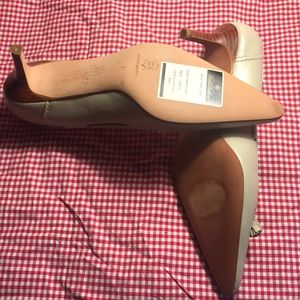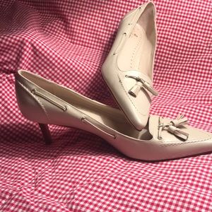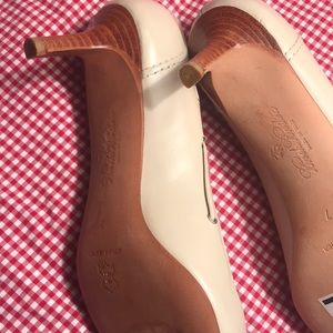 NEW BROOKS BROTHERS CLASSIC BONE LEATHER PUMPS SHOES STACKED HEEL Size 7