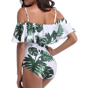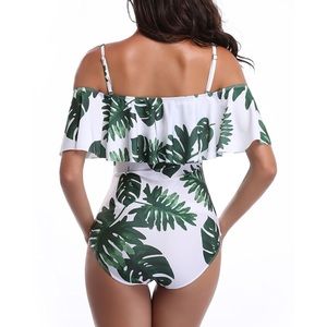 Off Shoulder Ruffle Overlay One Piece Monokini