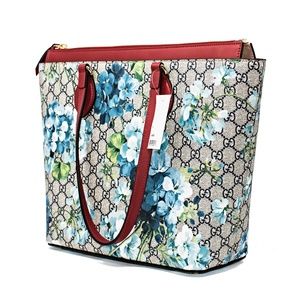Gucci blooms-print GG supreme canvas tote bag with leather trim.