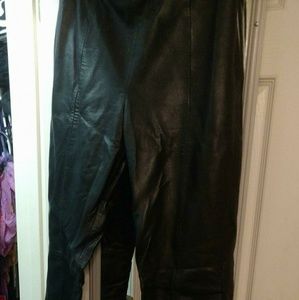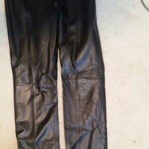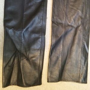 These are vintage and one owner! Slight boot cut, fully lined and in fantastic condition! No fading, stains or rips. Leather in great shape. Waist is 28-29" with some stretch because it's all leather .in seam length from waist to bottom 41.5"