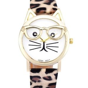 NEW Hipster Cat Watch with Glasses & Leopard Band