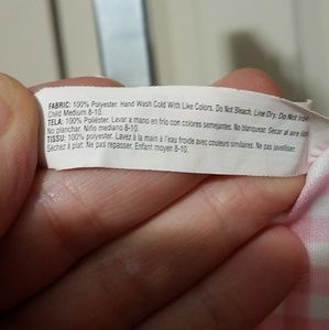 This dress is in good shape as it's only been worn a couple times. It has a small amount of color bleed pink onto the white which is not very noticeable.