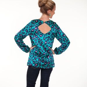 How fun! This blue & pink cheetah print top is great for a night out!