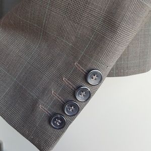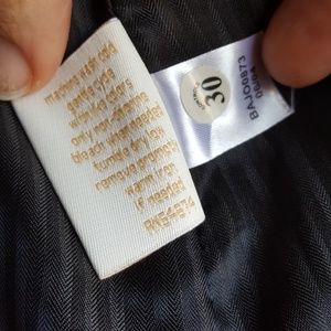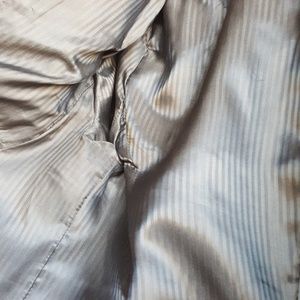 Very subtle blue pinstripe. Fully lined brown interior wrinkle resistant fabric, no ironing at all! One flaw shown in the photos, otherwise excellent condition fitted blazer professional work suit top