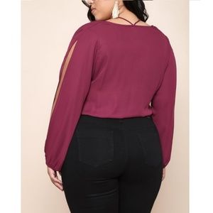 🎉HP🎉🆕🌸Laced up Open Shoulder Burgundy Top