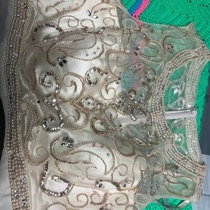 This was my prom dress senior year of high school. I am still in love with it but I have no use for it now! It is a floor length gown with beading at the top! Very very pretty!