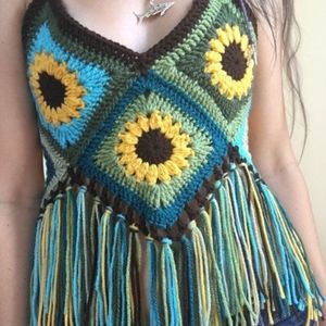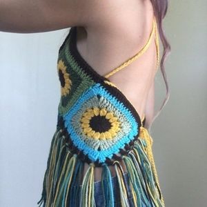 Handmade crochet vintage granny square haltertop
