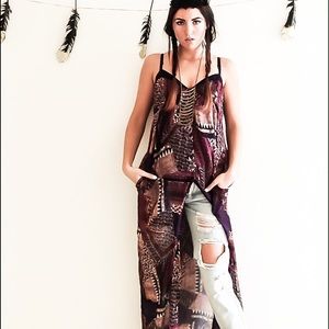 Maxi dress size small but fits medium as well. You can wear this dress 2 different ways. Open up with jean or closed up for a dressy event. Great and light weigh material.