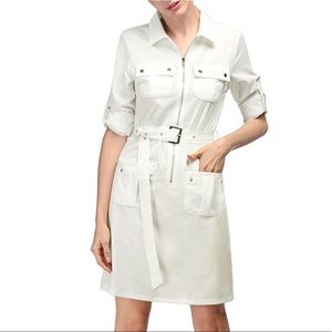 Belted Zip Up Multi Pocket Boyfriend Shirt Dress