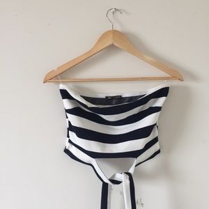Nautical blue and white tie front top. Tie can to the side or front and great with skirts or jean shorts.