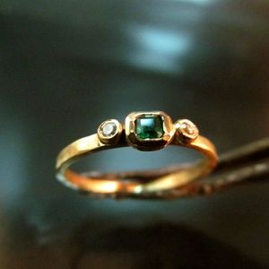 Beautiful 14k yellow gold set with Emeralds & 2 Diamonds on the side.