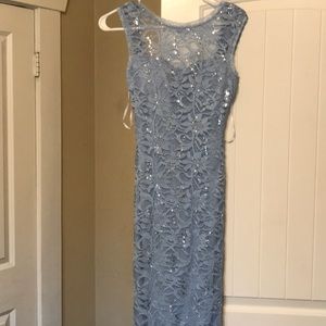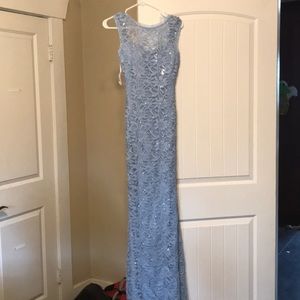 Another one! A Cinderella blue-lace, floor-length formal dress. It has some sequin detailing throughout and a low back. Bought this two years ago and never wore it. It was too late to return it and I removed the tags out of excitement. It's in perfect condition. Open to offers :)