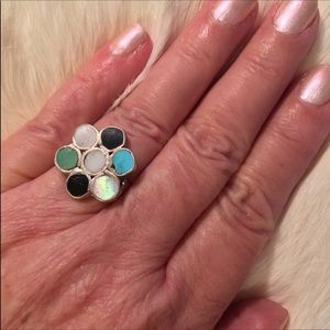 925 SterlingSilver(?) Artisan💍w/7 Gemstone 5