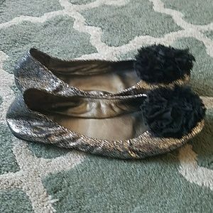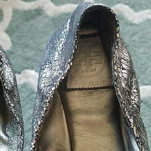 💋SOLD TORY BURCH Silver Flats Sz 8 1/2