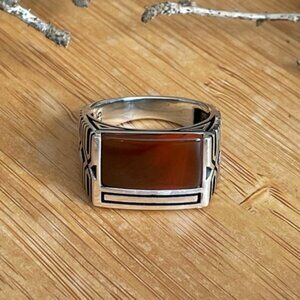 925 Sterling Silver Men's Ring With Agate Stone