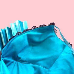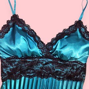 Teal Pleated Satin Dress with Black Lace NWOT S