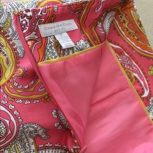 Super cute Charter Club Paisley pink, orange and yellow skirt. Great addition to any summer closet. 2 pockets at the front zipper at the back and fully lined in pink.