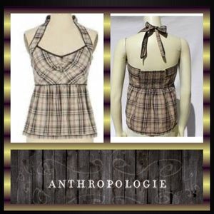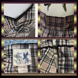 edmé & esyllte, sz 12, tan and black classic plaid halter top with side zip and elastic back. Preloved but lots of life left. Perfect for your summer picnics🐜🍉