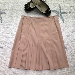 NWOT Ann Taylor Loft pleated pink skirt. Never worn. Adorable with a blouse, cardigan and kitten pumps. Measurements, fabric content & care shown in pix. PKW