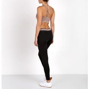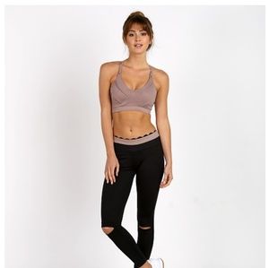 Our new favorite sports brand, Track & Bliss. The triangle sports bra features a v front and zig-zag stitched mult-straps in the back. Leopard printed lining.