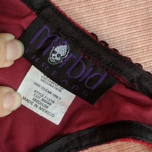 Red velvet and matte black material. Size Medium. Great Condition