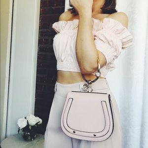 🆕Shelby Pink Off the Shoulder Ruffle Crop Top New Boutique Item. The Shelby Top features a off the shoulder silhouette, ruffle details, elastic at arms & waist, and short sleeves.
