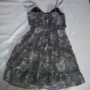 Super cute AEO (lighter)gray on gray dress w all over floral print pattern.. Adjustable spaghetti straps.. 3 teir ruffles towards bottom.. 100% polyester. Sz 4. Feel free to ask any questions💕