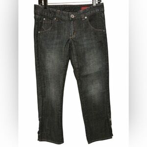 Express X2 Dark Wash Crop Jeans Size 6 NWOT NEW Snap Hem Stretch Denim