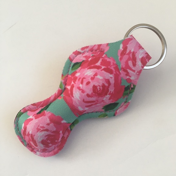 NWOT lipstick / chapstick keychain holder accessory. I have one of each design in photo. Does not come with chapstick or lipstick, just the keychain. Photo with chapstick is to show the typical size that fits. Made of Neoprene. New without tags, never used, handmade. Pink, blue green designs. Great for friend, teacher, or bridesmaid gifts!